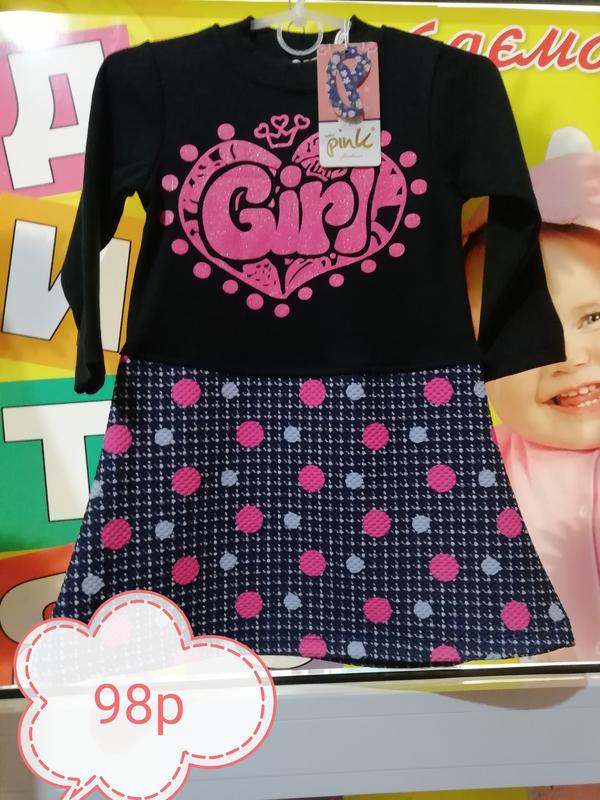 Платье для девочек 98-104 отлично для садика. Длина 51, плечи 24,5см, подмышками 27,5см, рукав от пле, а 30, талия 28
