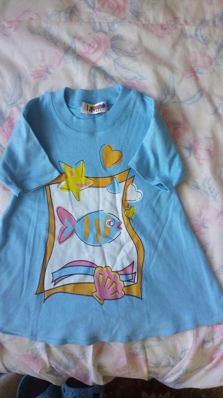 Гарненька, трикотажна сукня, ПОГ 32 см, довжина 49 см., плечі 32 см, рукав до плеча 13 см, довжина рукава з плечем 22 см.