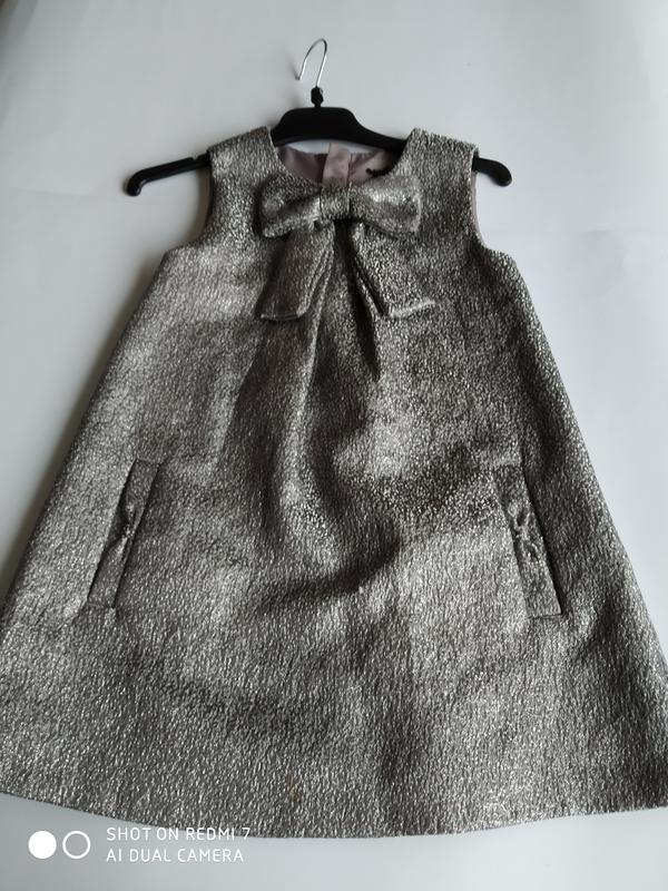 Платье без рукавов, красиво когда под низ кофтинка или гольф, фирмы Next на возраст 5 лет, на спинке замочек, спереди 2 карманчика. Замеры: полуобхват груди 30 см общая длина 57 см