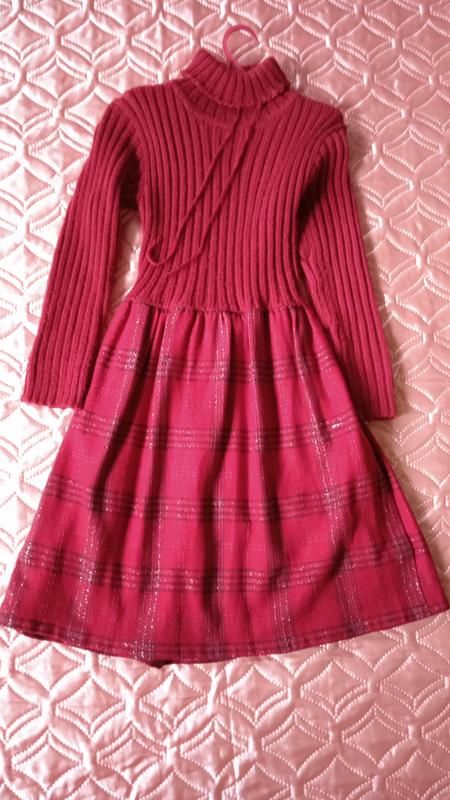Плаття зимове, тепле з натуральних матеріалів. Верх плаття в'язка з шерсті, не колеться. Низ костюма тканина. Довжина 80 см Ширина 30см.
