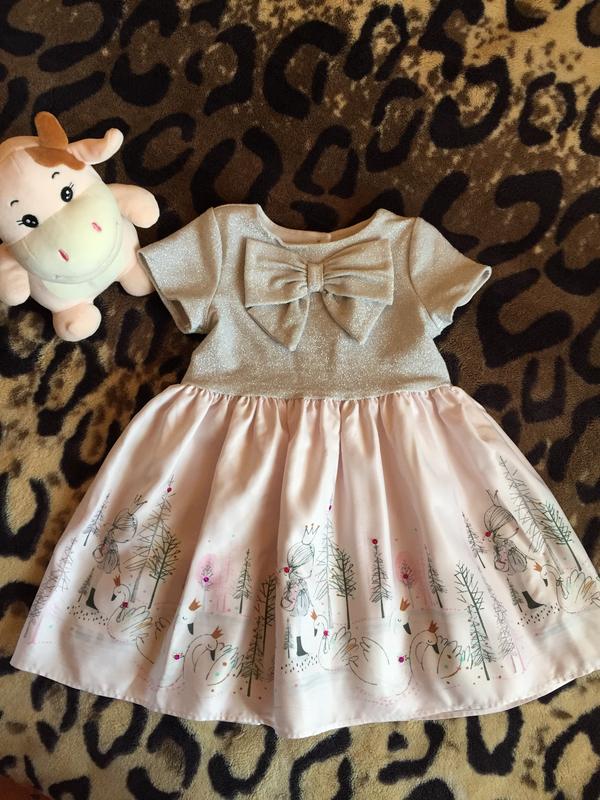 Невероятно красивое,нежное,нарядное платье на девочку 2-3 года!Снизу по краям фатин ,верх красиво блестит на солнышке,сзади завязывается на бант .Длина 55 см