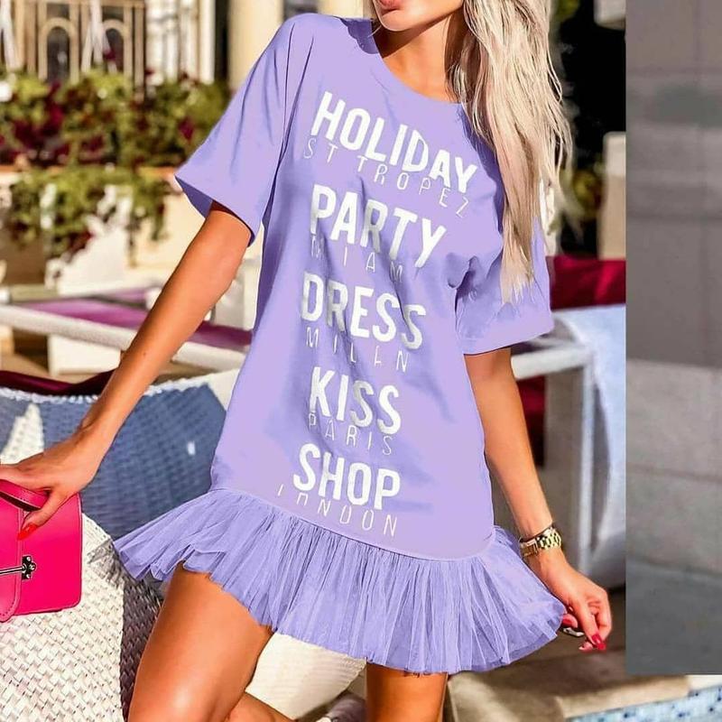 Предзаказ. Отправка 12-13.04 Стильная модная новинка😍😍😍 Легкое невесомое платье для юных модниц, то, что надо жаркими днями!!! Платье-футболка, низ украшен фатиновой рюшей. ткань: ХБ🇹🇷🇹🇷🇹🇷(стрейч-кулир)Ткань не просвещается! Размеры:140,146,152,158,164 Цвет: лиловый Цена: 395грн Полномерные. Размеры 140(34)-1шт 146(36)-1шт 152(38)-1шт 158(40)-1шт 164(42)-1шт