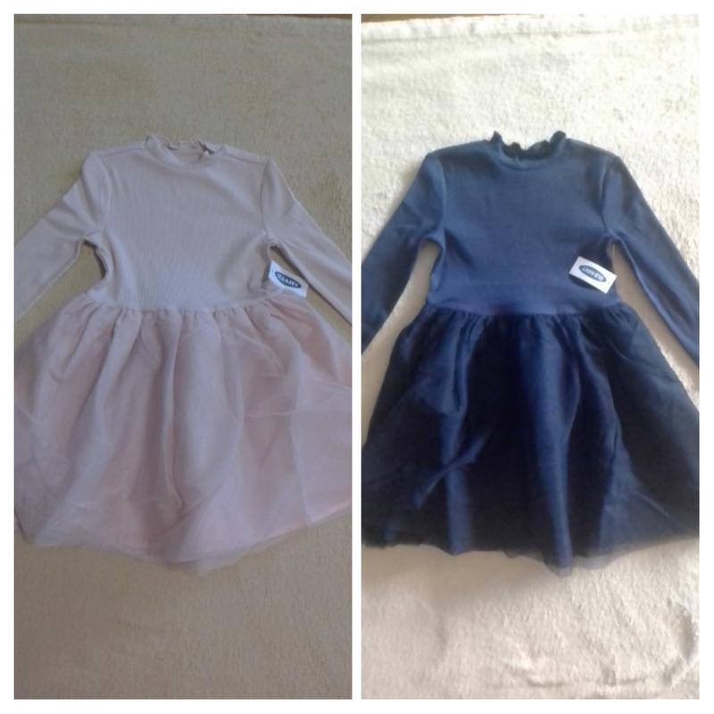 Новое платье Old navy. Размеры: * тёмно-синий - 3,4 года * бледно-розовый - 3 года - Продано Верх ткань хлопок 57%, полиэстер 38%, эластан 5%. Ткань - мелкий рубчик, мягкая, приятная у телу, хорошо тянется. Низ -3 слоя фатина и подкладочная ткань. Удобное и практичное, подойдёт как для повседневной носки так и на праздник. Замеры: 3 года: Рукав 33 см Плечи 24 см Длина по спинке 54 см ПОГ 25 см 4 года: Рукав 35 см Плечи 27 см Длина по спинке 57 см ПОГ 27 см