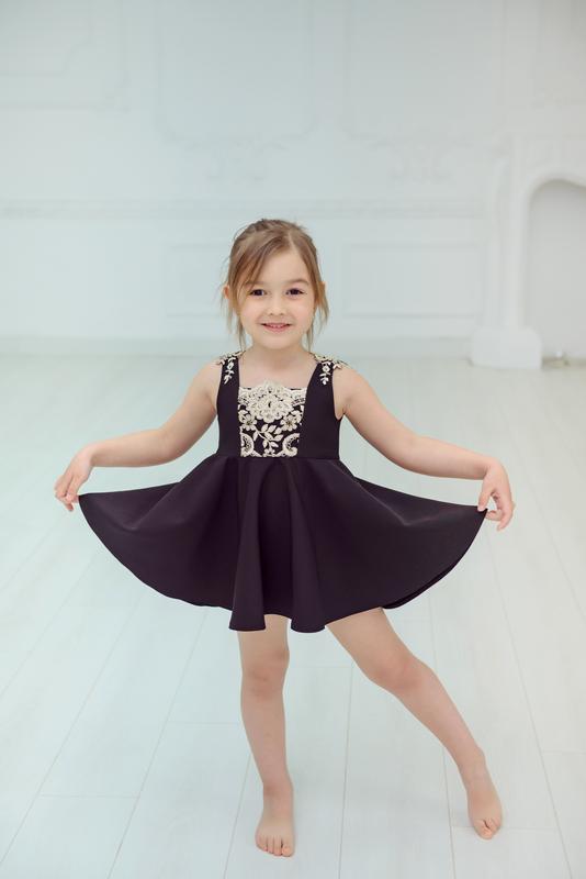 Рост 104-110, ткань плательная, цвет черный,сзади змейка,низ солнце (хорошо кружиться!)Платье очень лёгкое, удобное и нарядное
