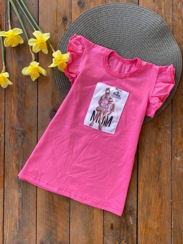 Летнее платье. Рисунок- нашивка, рукава- воланы. Стрейч трикотаж- Мягкий, качественный, хорошо тянется. ✔ Размеры: 56 р (90-98) – 46см 60 р (98-104) – 52см 64 р (110-116) – 58 см 68 р (116-122) – 64см