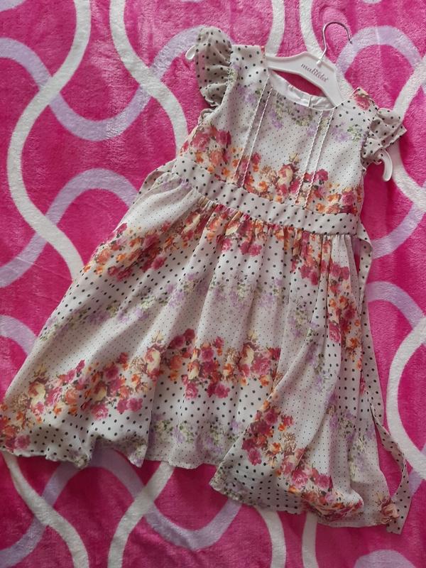 Одевали на рост 110 см. Можно и раньше. Легкое шифоновое платье. Состояние идеальное