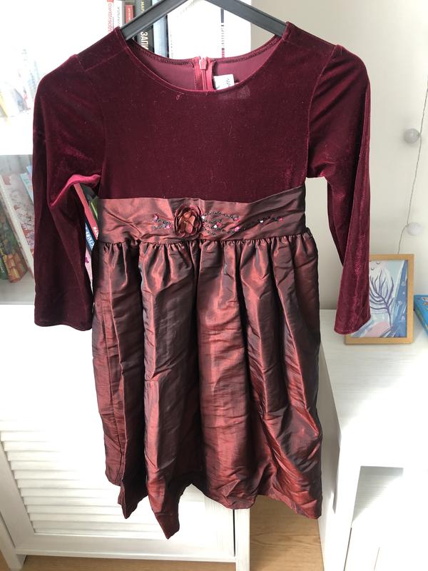 Платье для девочки, есть один нюанс на рукаве(немного затерлось), остальное в идеальном состоянии. Длина 80 см, длина рукава 40 см