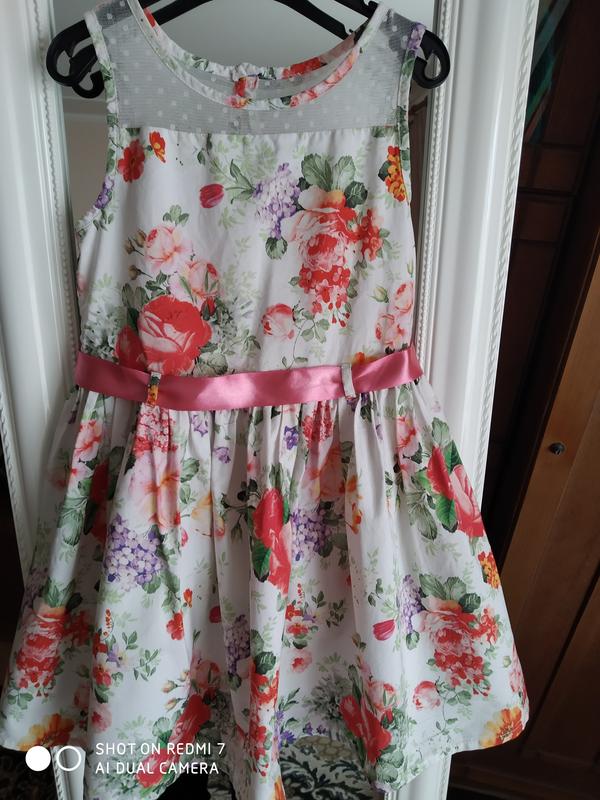 Отличное летнее платье фирмы TU на возраст 4 года, рост 104 см, замок на спинке.Замеры: полуобхват груди 28 см от плеча до талии 26 см от талии до низа 31 см общая длина 57 см