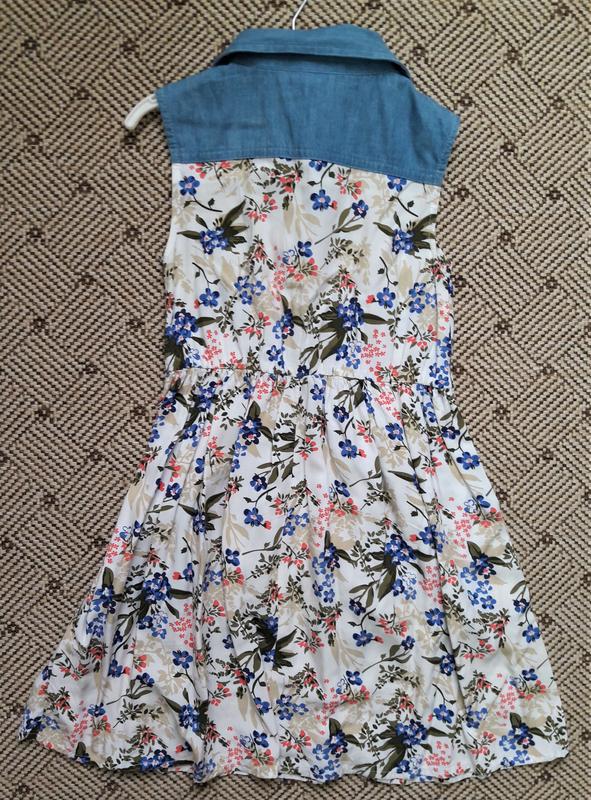 Хорошенькое летнее платье. Легкое, не парит на жаркую погоду оно просто идеально. Ткань под джинс -котон, все остальное вискоза. Длина- 67см. от плеча до талии-27см. ПОГ-34см.