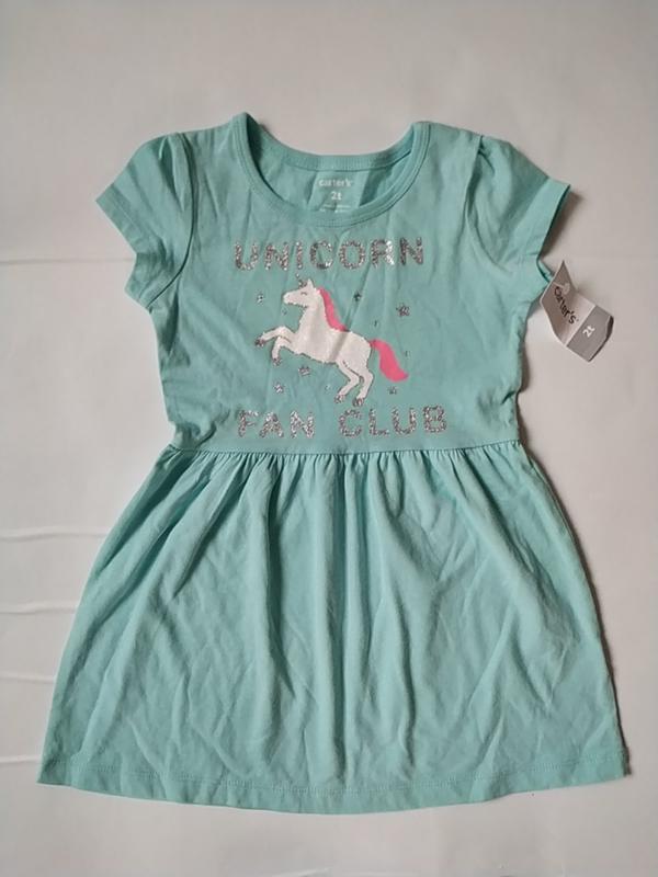 Трикотажное платье бирюзового, мятного цвета с блестящим единорогом. размер 2Т длина 50см ширина 28см