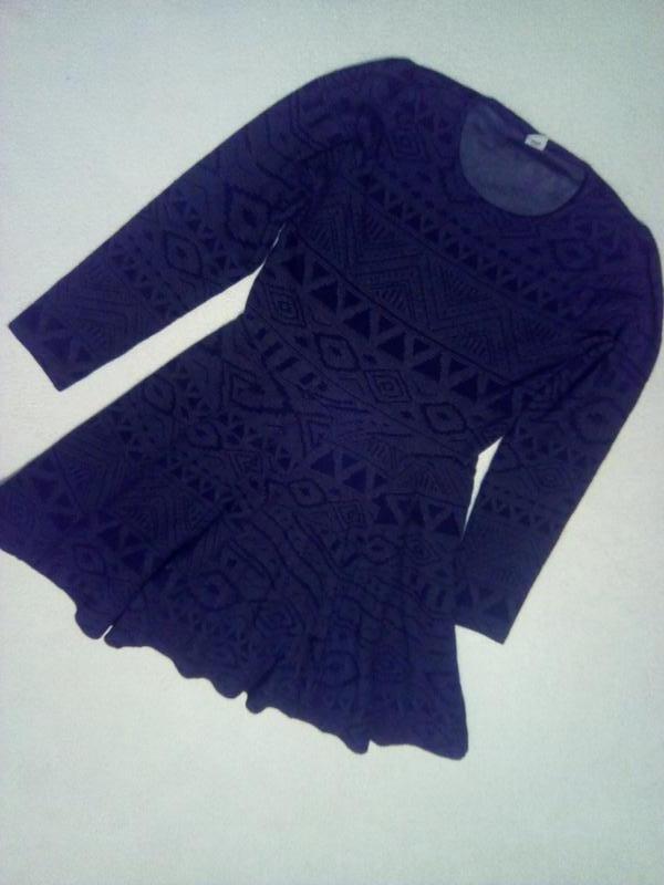 Красивое платье на девочку, рассчитано на 10 лет(140 см рост).Цвет темно синий,по всему платью идёт орнамент.Ткань тянется. Дефектов и нюансов нет. Замеры по запросу