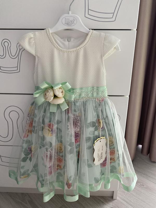 Летнее нарядное платье для девочки. Брошка на поясе отстёгивается по необходимости. Юбка фатин. Отличное турецкое качество
