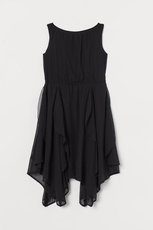 Нарядное платье H&M на 10-11 лет на р.146. Платье без рукавов из воздушного шифона с широким вырезом, узким эластичным швом на талии и асимметричной юбкой с пришитыми воланами для дополнительного объема. На подкладке. Состав. Полиэстер 100%.