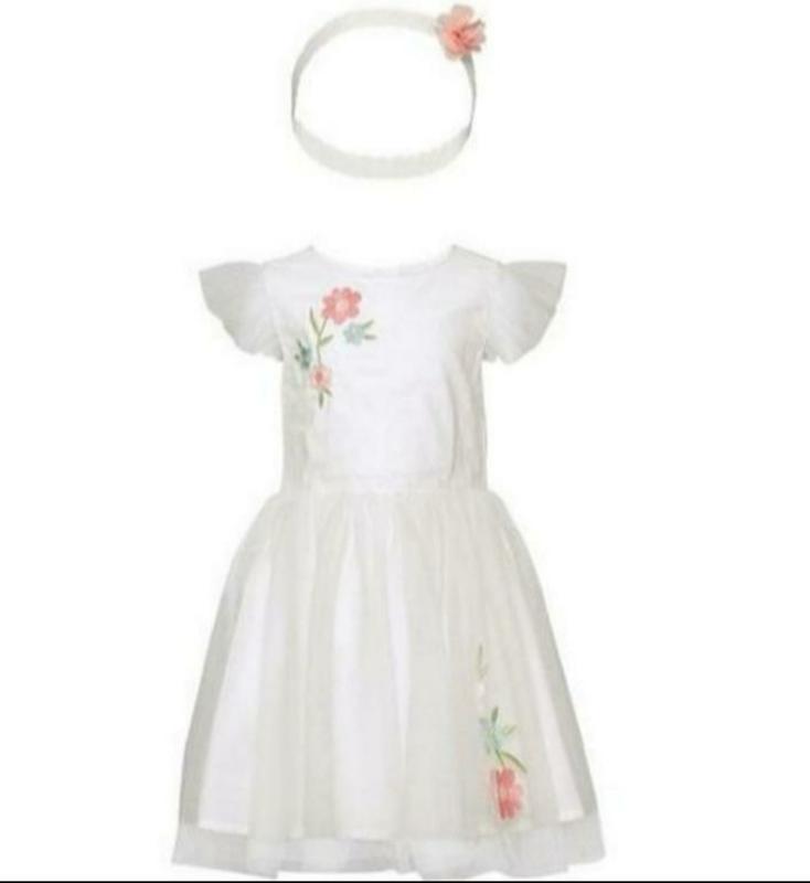 Нарядное платье LUPILU на 4-6 лет на р.110/116. - Изготовлен из удобного тюля - С милой цветочной вышивкой - Застежка на пуговицы сзади - С подходящей резинкой для волос - С подкладкой из чистого хлопка Верх ткани: 100% полиамид; подкладка: 100% хлопок; Оголовье: 89 % полиамид, 11 % эластан.
