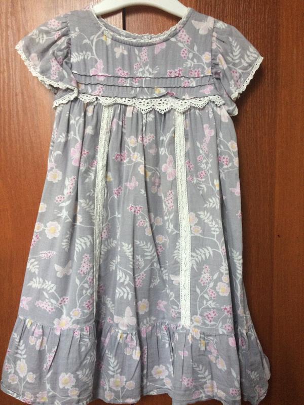 Дуже красива літня сукня з ніжним квітковим принтом, мереживом, на підкладці. Шведський бренд Lindex р.98, ідеальний стан (розійшлася в одному місці ниточка- показала на фото). Дуже приємна до тіла, натуральна тканина, ідеальна для жаркого літа. Довжина по спинці 52см.