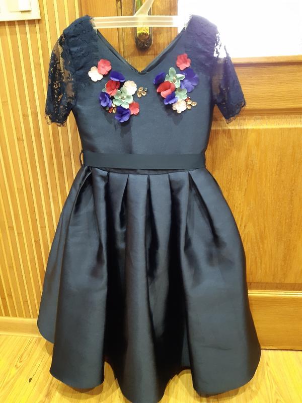 Нове Плаття MONSOON 10 років.(Англія)фірма дорога .Цвет темно синій.Просто шик для маленької принцеси,ткань плотная немнеться,рукава дороге ,мяке,кружево.Красива і стильна вишивка з квітів і камінчиків,є поясочок і заді замочок.Длина плаття 85см, під мишками 32см, в талії 29см