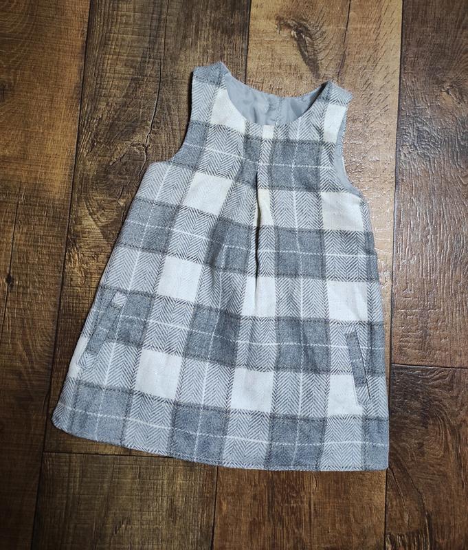Сарафан платье плаття тёплое 86-92см тепле шерсть клетка белое серое 1-2г