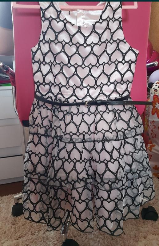 Платье для девочки на рост 128.Пышненькое,юбка в три слоя.По спинке молния.Полиэстер.под поясок.Пог 33 см, пот 30 см, длина от верха плеча 63 см.Состояния отличное.