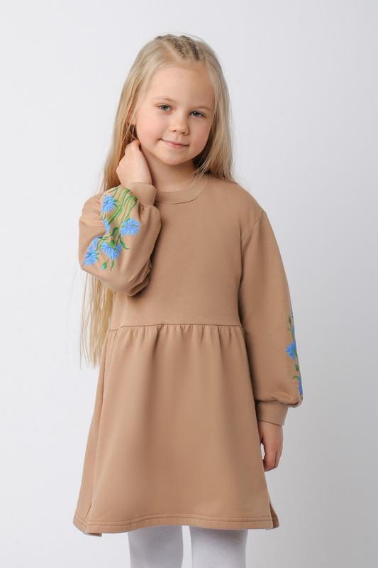 Сукня виконана з м'якого яскравого та якісного трикотажного полотна "Футер з начосом" та прикрашена накатом. Футер с начосом - трикотажне полотно, виготовлене з 100% бавовни. Полотно дає усадку при пранні. Підходить для повсякденного використання в прохолодну пору року. Полотно: футер з начосом. Склад: 100% бавовна. Правила догляду: вироби перуть в режимі "ручного" або "делікатного" прання при температурі до 30°С.