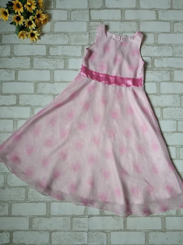 Нарядное розовое платье на девочку с розами в хорошем состоянии Размер 8 лет,рост 128 см Замеры: длина 90 см плечи 24 см ПОГ 34 см ПОТ 32 см цвет розовый состав 100% полиэстер