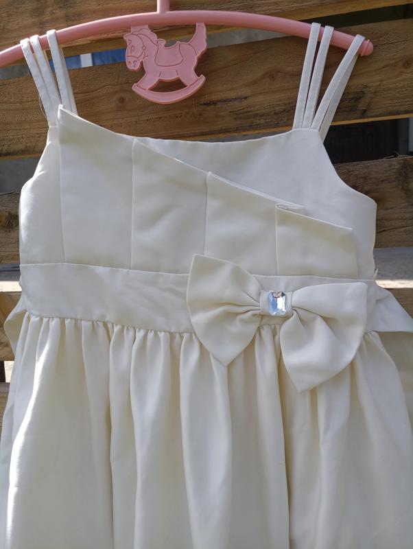 Шикарне плаття на 5 рочків (хоча дивлячись яка дитинка, нашій8 і ще добре ).Плаття універсальне може бути як до підлоги так і трохи вище,якість хороша,плям немає,стан задовільний,колір ніжний ,одягалося раз.З внутрішньої сторони пришитий під-юпник з фатіну
