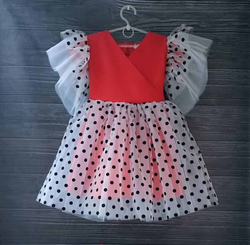 Нарядное платье 🌺 Ткань - костюмка, юбка - евросетка в два слоя, горошек - флок Затегивается на потайной замочек на спинке, сзаду есть поясок валери, модняшкуси Цвета: пудра, красный, сирень, голубой. Розмеры:104- 110, 116, 122, 128.