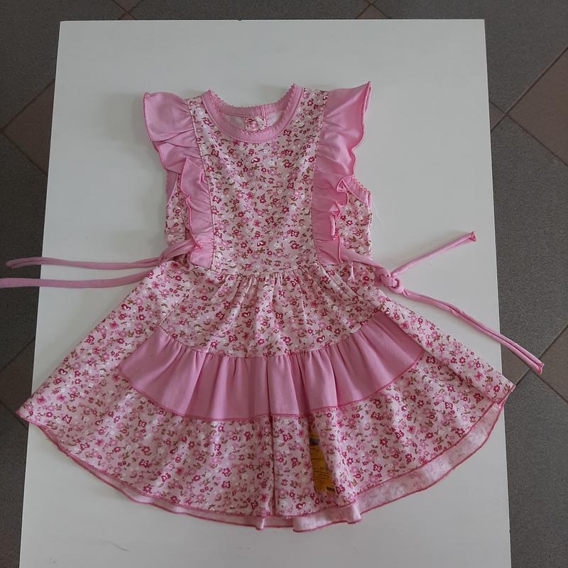 сукня бавовна, Україна р. 92, довжина до талії 20см, спідниця 24см, піт 26см рюші, волани, з боків завязочки, ззаду гудзики.