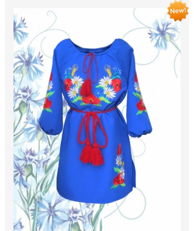 Розмір від 116 до 158. Тканина габардин. Не потребує особливого догляду. Довжина вишиванки вище коліна, шнурівка з китицями червоного кольору дозволяє регулювати горловину, рукав 3/4 на резинці, знизу невеликі розрізи, пояс оздоблений шнурівкою з китицями червоного кольору який дозволяє регулювати талію та доповнює вишивку. Заміри: 116 р. довжина по синці-63 см, довжина рукава 40,5 см-, ширина в грудях- 39 см. 122 р. довжина по синці-66,5 см, довжина рукава-43 см, ширина в грудях-39,5 см. 128 р. довжина по синці-70 см, довжина рукава-45,5 см, ширина в грудях-40 см. 134 р. довжина по синці-73 см, довжина рукава-48,5 см, ширина в грудях-41 см. 140 р. довжина по синці- 76,5 см, довжина рукава 50,5 см-, ширина в грудях- 42 см. 146 р. довжина по синці- 79 см, довжина рукава 53 см-, ширина в грудях- 43 см. 152 р. довжина по синці- 82,5 см, довжина рукава 55,5 см-, ширина в грудях- 44 см. 158 р. довжина по синці- 86 см, довжина рукава 58 см-, ширина в грудях- 45 см.