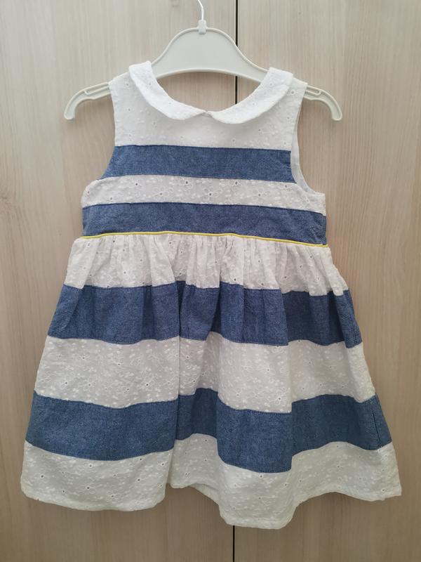 Дуже гарне літнє плаття фірми GEORGE. Розмір 92. Новеньке, просто без етикетки, було велике, а зараз на нас коротке. Тканина під м' який джинс та прошва, є х/б підкладка. . ЗАМІРИ -довжина 48 -під руками 27 -плечі 20 -від плеча до пояса спідниці 17 -довжина спіднички 31