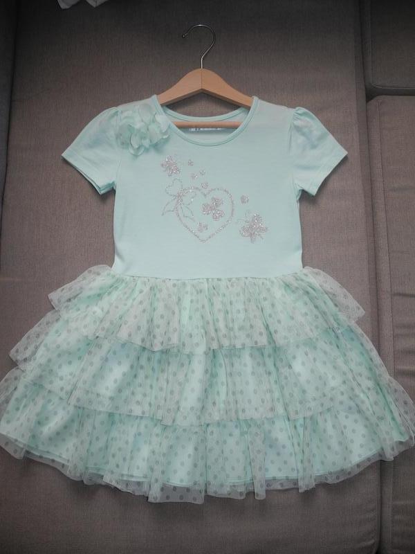 Сукня, ріст 104, можна носити зі зросту 98 по 116 см. Ошатне, красиве, повномірне, фірми бонприкс, якість , як і всі дитячі речі - супер. Одягали один раз, ніяких слідів, ніяких дефектів. Стан НОВОГО.