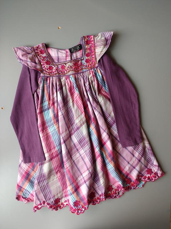 Пишне котонове платтячко з трикотажними рукавами і вишивкою на дівчинку 5-6 років зростом 110-116см (краще дивитись заміри). Ціленьке, без плям.