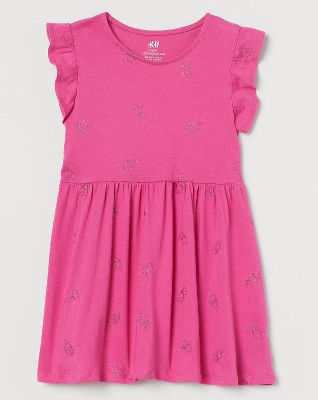 Платье из мягкого трикотажа из органического хлопка. Рукава с оборками и отрезная талия на резинке, с декоративной сборкой. Состав Хлопок 100%. Яркая расцветка,блестящий принт-эскимо.