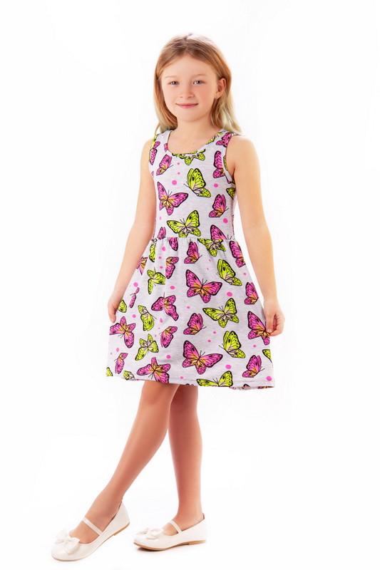 Лёгкое красивое платье (сарафан) для девочки. Натуральная ткань фуликра - качественное тонкое трикотажное полотно, не линяет и не теряет форму после многократных стирок. Принт-яркие неоновые бабочки, отличный вариант для летних прогулок. Размеры 110 Замеры: длина платья 58см, ПОГ 28см.