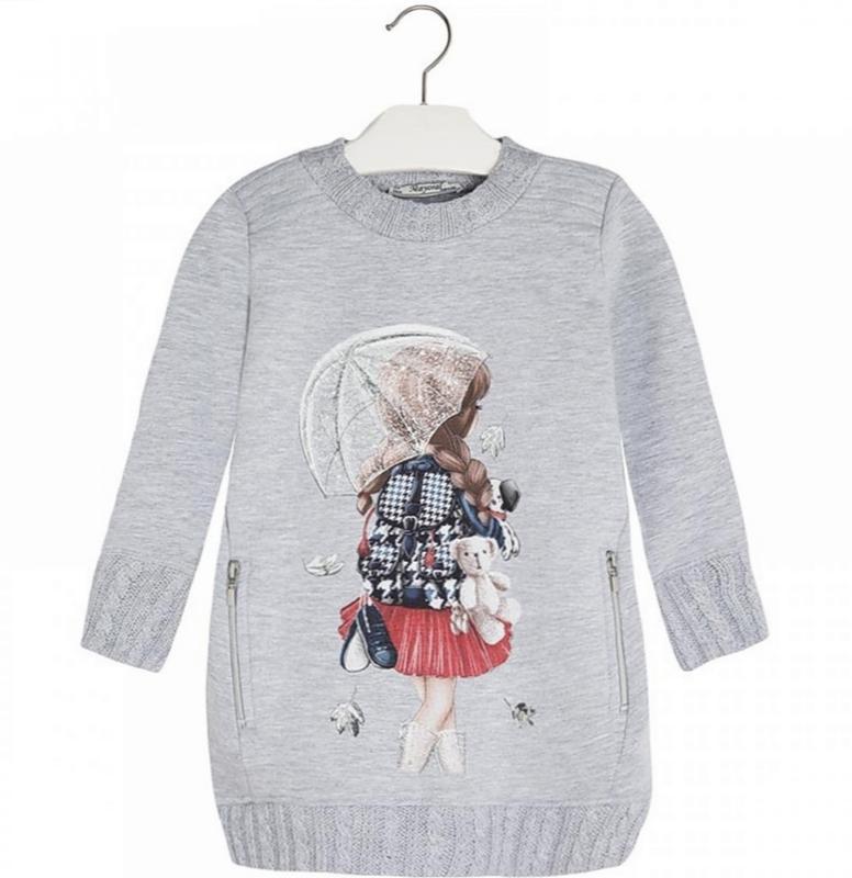 Красивое и качественное фирменное платье на девочку 4-5 лет (по бирке на 5 лет). Теплое, с начесом. Фирма Mayoral. Ширина плеч 26 см., длина рукава 38 см., ширина под мышками 31,5 см., длина 53 см.