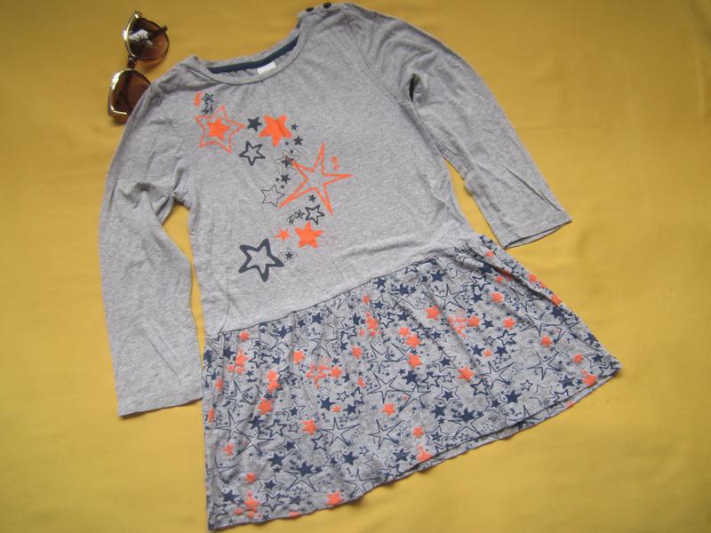 Вискозное платье для дома...и не только ,на девочку, р.128, Palomino. Цвет - серый меланж ,разноцветный. ПОГ 34см. Ширина плеч 27см. Длина рукава 43см. Длина платья по спинке 57см.