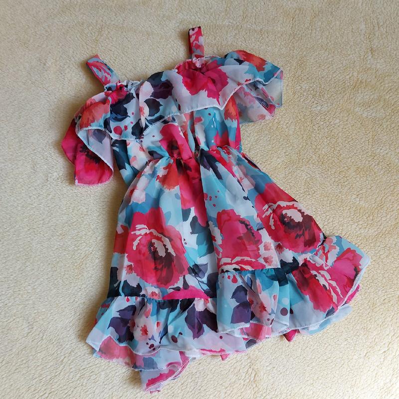 прелестный летний сарафан очень легкий и красивый шифон ,подкладка хлопок пояс и волан на резинке ,хорошо тянется точно такое как на рекламном фото смотрим замеры ЗАМЕРЫ длинна /ширина по груди 80р 50/22 90р 54/26 110р 58/28 НАЛИЧИЕ 80р 2шт 90р 1шт 110р 1шт.кидсбебшо