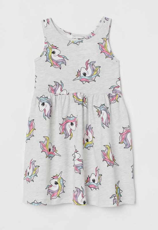Плаття для дівчинки від H&M ⠀ Легке плаття прикрашене яскравим принтом «єдинороги» по всій довжині. ⠀ Привезене з Англії. ⠀ ▪️розмір: 8-10 років ▪️зріст: 134/140 см ▪️заміри: довжина 72 см, ширина 36 см ▪️тканина: 99% бавовна, 1% віскоза