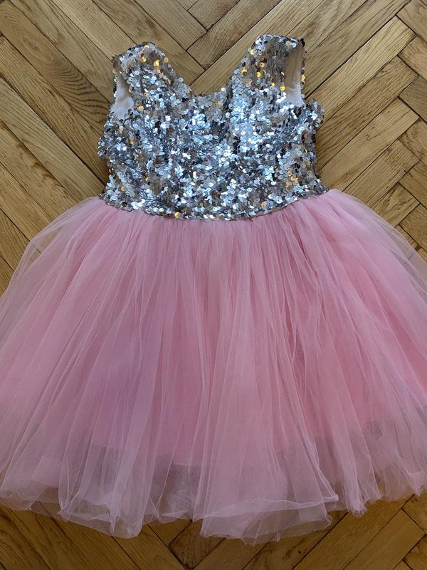 По етикетці на 110 ріст Регулюється позаду поясом з відкритою спинкою Довжина 60 см Пів обхват грудей 29 см 3 фатинових під‘юбникі