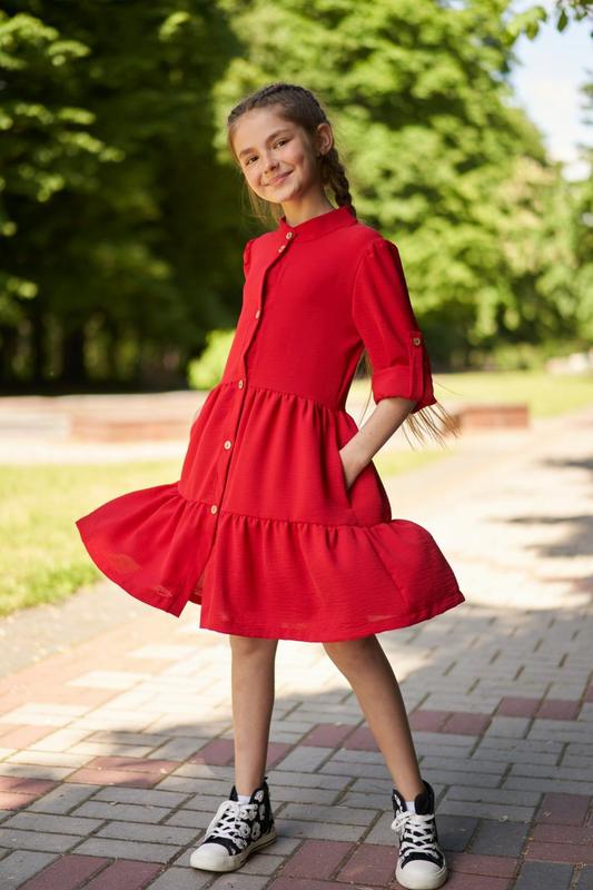 New colour's! 🥳🥳🥳 плаття з манжетом Блум. Рукав підкачується. Американська жатка Ріст :110, 116, 122, 134, 140 см. Колір :червоний, темно-синий, бордо, голубий.