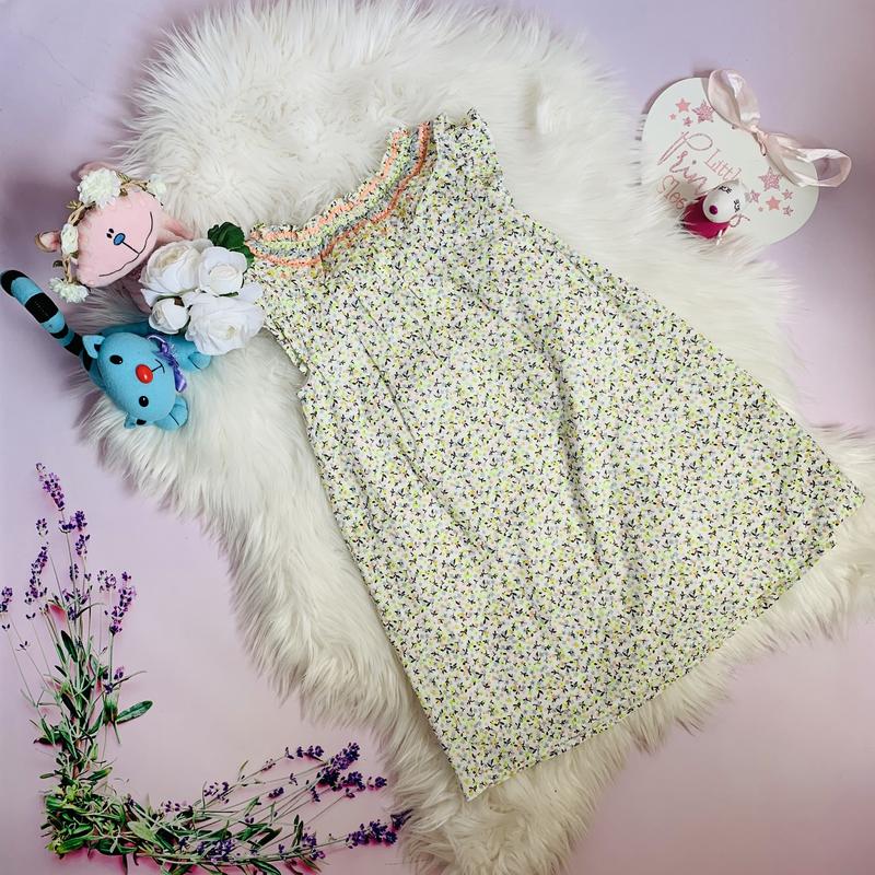 красивое платье next девочке 4-5 лет состояние отличное. Состав - 100 % хлопок. Цена -175 гр. Замеры: Общая длина от плеча-61 , ширина по спинке под рукавчиками -32см.