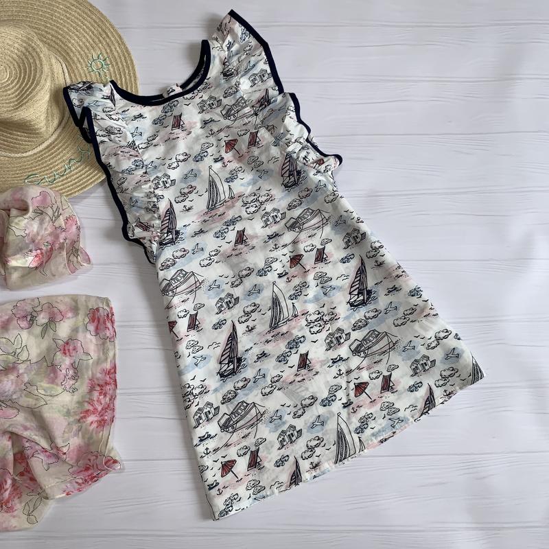 Стильне котонове біле платтячко від M&S в кораблики . 🔅6-7р. 🔅Довж.64 🔅Шир.33 🔅Стан 5+