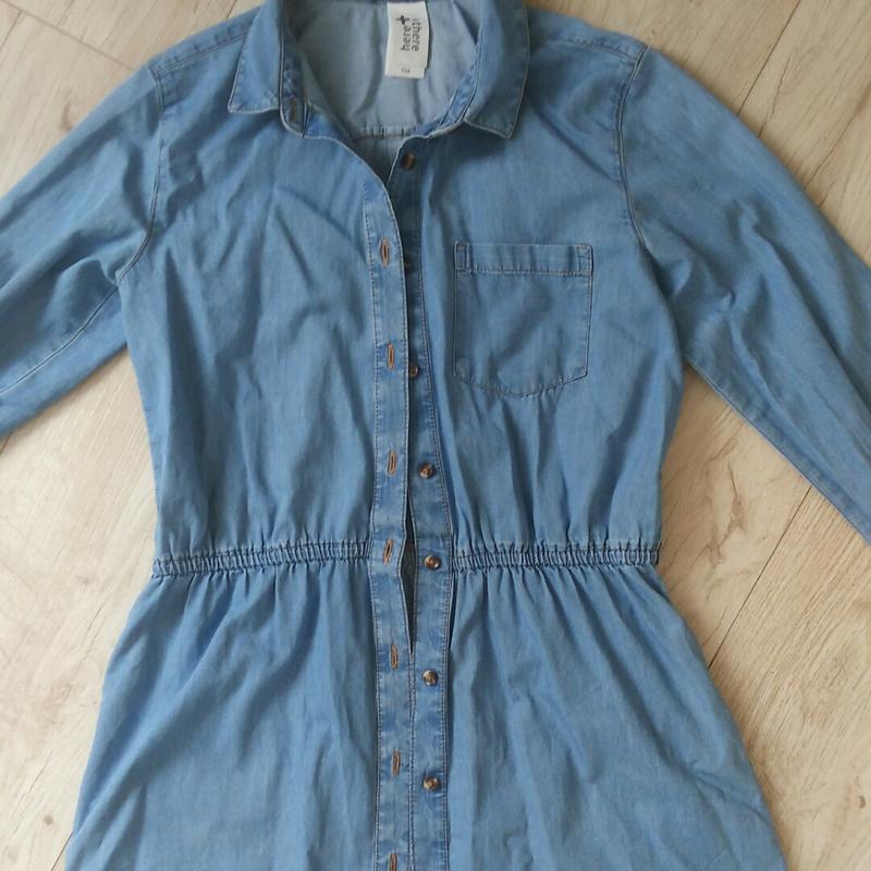 Джинсовое платье на рост 152 см, можно чуть раньше. Есть незаметное пятнышко, показала на 3 фото, поясок не могу найти( Рукав можно подвернуть( фиксируется) ПОГ 40см , плечи 34 см, длина рукава от плеча 54 см, длина 74 см