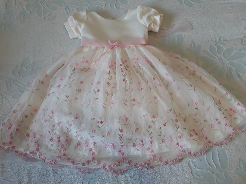 Плаття нарядне клешное для дівчинки 5-8 років. Біле плаття верх атлас до пояса. Низ - фатин з квітковою вишивкою і підкладкою. Сукня червона, верх-паєтки, низ - блискучий фатин з підкладкою. В ідеальному стані. Розмір 128. В більш холодну пору можна одягти білу кофту з рукавами і білі колготи, особливо ошатно виглядає з червоною сукнею. Заміри на фото.