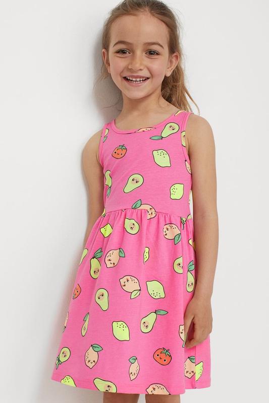 Платье без рукавов из хлопчатобумажного трикотажа с рисунком, присборенным швом на талии и расклешенной юбкой. Состав: Хлопок 100% Размер UK 6-8Y (122-128)