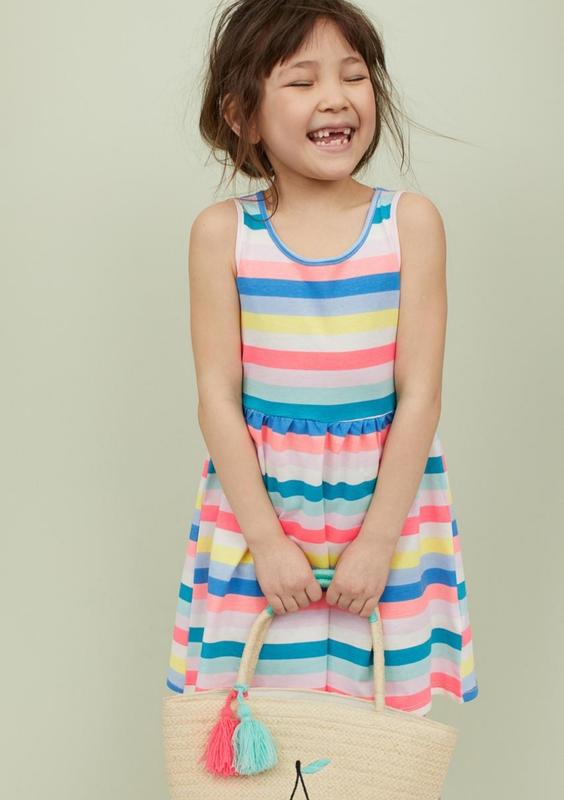 Літня сукня для дівчинки в різнокольорову смужку шведського бренду H&M. Тканина - 100% бавовна. Розмір в наявності на зріст 92см. Відправка в день оплати. Є наложенний платіж з частковою передоплатою 100грн.