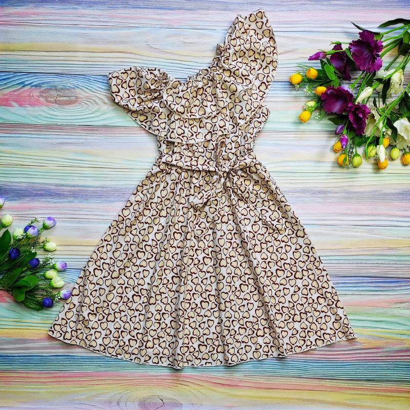 Воздушное платье для принцессы, ткань супер софт одно плечо спущено , в талии есть резиночка, поясок в комплекте. длина/пог 128-71/35 134-73/36 140-75/37