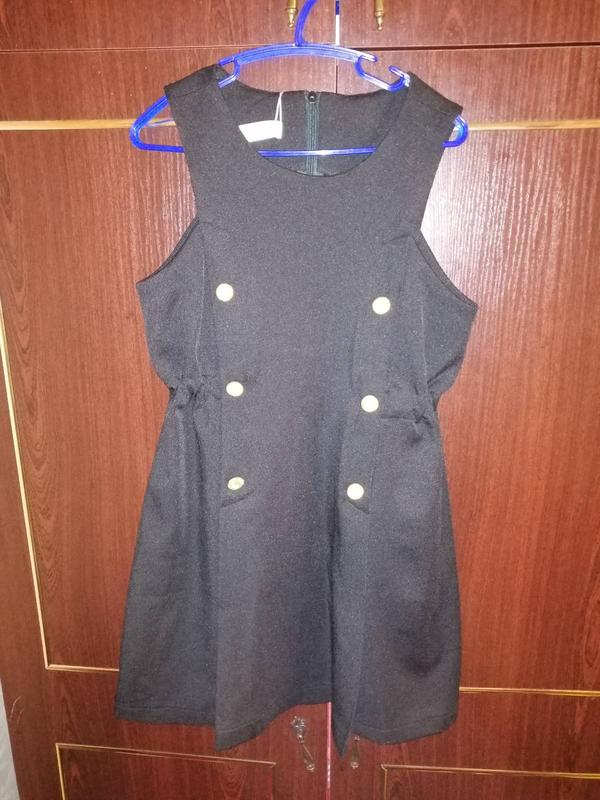 Новые вещи с бирками. 1. Сарафан с красивым декором из золотых пуговиц отлично подойдет под любую блузу или гольф. Размер на 11-12 лет. Состав 70% хлопок. В талии по бокам вшита резинка, поэтому отлично сядет на любую фигуру. Застегивается на молнию. Но за счет резинок, то можно снимать и через голову, что особенно удобно для физкультуры. Замеры: длина -72 см, ПОГ 39 см.