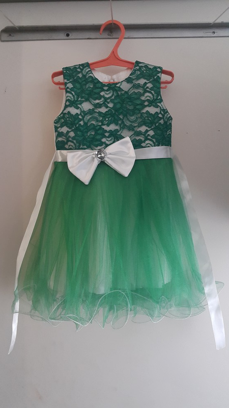 Нярядное плать. В идеальном состоянии. Одето один раз. На утренник в роли елочки. Длина до талии 21 см. Длина платья от плеча 57 см. ПОт 27.