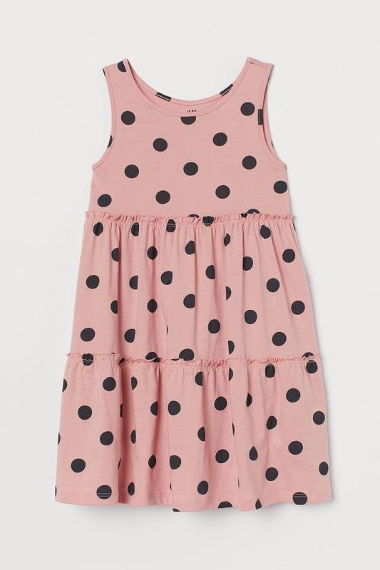 Классное свободное платьице в горошек H&M Отличное качество по отличной цене! Платье без рукавов из мягкого трикотажа из органического хлопка. Расклешенный силуэт и присборенные швы с оборками на юбке. Без подкладки. Состав: Хлопок 100%. Цвет: розовый/горошек. Размеры в наличии: 98/104, 110/116, 134/140. Цена окончательная!