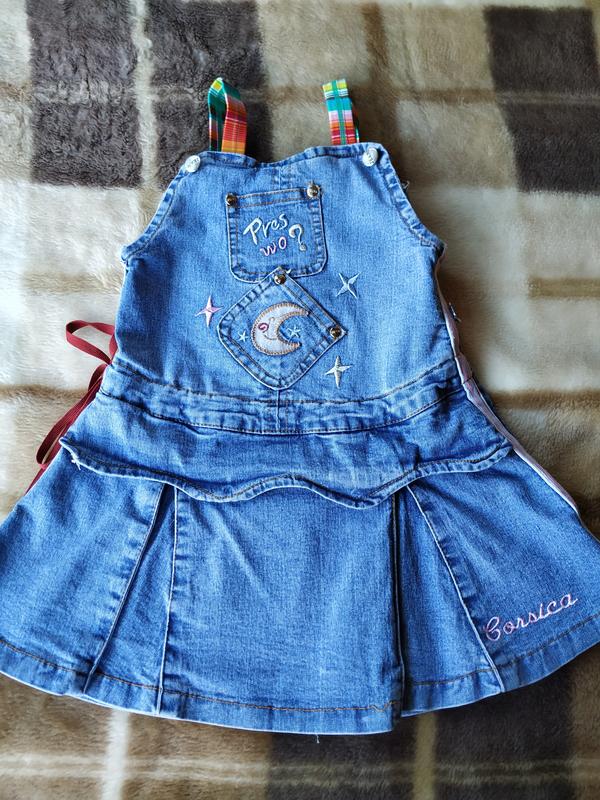 Джинсовий сарафанчик в дуже гарному стані,є нюанс, поламалася собачка до замочка. Розмір 2 роки